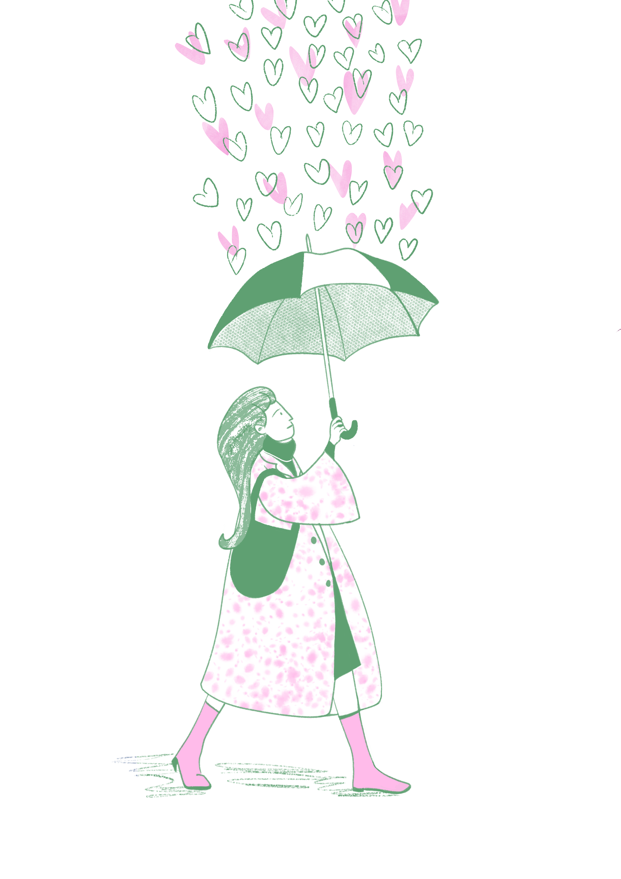 This piece captures a woman guarding herself from love and the pain of a broken heart; choosing self-protection and emotional boundaries after past heartbreak. It’s gentle, witty, and relatable to many readers. This illustration works for any project exploring emotional self-protection, healing, and modern love. I chose two contrasting colours to emphasise our struggle we sometimes face between love and heartbreak.