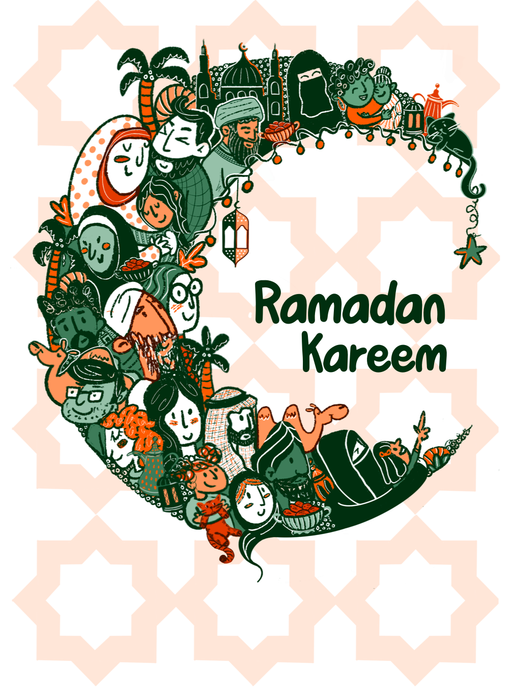 This illustration was created to celebrate the love, community, kindness and beautiful diversity that Ramadan brings. A reminder that we are deeply connected to one another, no matter our background. This was a special message for me to share as I created this piece during the war in the Middle East.